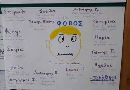 Τα συναισθήματα μας υπάρχουν παντού και πάντα και εκδηλώνονται καθημερινά. Οι αφορμές μπορεί να είναι πολλές. Μια διαμάχη ανάμεσα στα παιδιά, μια έντονη εκδήλωση συναισθημάτων από κάποιο παιδί, καθημερινά γεγονότα που συζητάμε στην παρεούλα, τα οποία μας προκαλούν ποικίλα συναισθήματα. Εμείς έχουμε δημιουργήσει ένα τέτοιο κλίμα μέσα στην τάξη για να μπορούν τα παιδιά να εκφράζουν και να καλλιεργούν ελεύθερα τα συναισθήματα τους. Οι καλές διαπροσωπικές σχέσεις ανάμεσα στα παιδιά και τις νηπιαγωγούς και φυσικά ανάμεσα στα παιδιά αποτελούν το κλειδί ώστε τα παιδιά να μπορούν να διαχειρίζονται αρκετά καλά τόσο τα δικά τους όσο και τα συναισθήματα των συμμαθητών τους.
